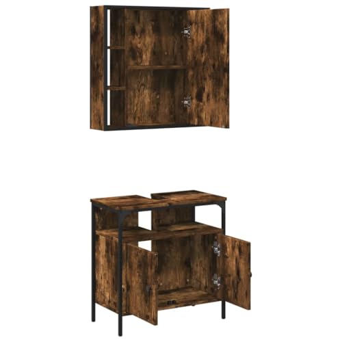 2 Piece Bathroom Furniture Set Smoked Oak Engineered Wood,Sturdy Bathroom Vanity Set with Mirror Cabinet and Ample Storage for a Tidy Bathroom Furniture Sets, Bathroom Furniture