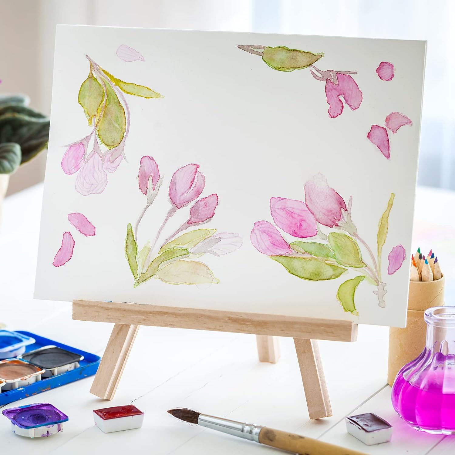 48 Pcs Mini Wooden Easels for Painting Canvas Wood Display Easel Artist Easel Art Painting Easel Stand Tabletop Easel Triangle Card Stand for Wedding Artist Adults Students Kids (12 Inch)