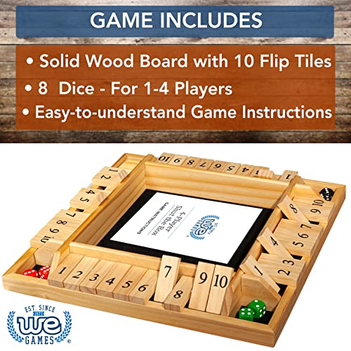 WE Games 14 inch 4-Player Shut The Box Wooden Board Game, Natural Wood