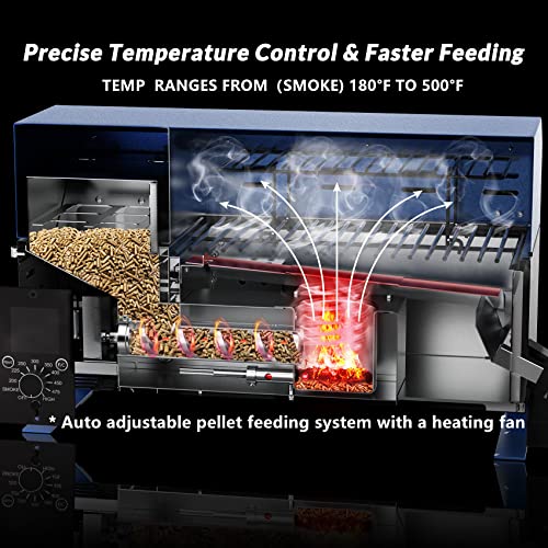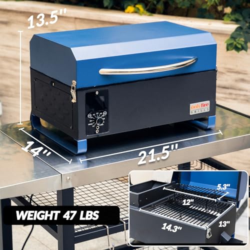 Onlyfire BBQ Wood Pellet Grill Smoker with Digital Control, LED Screen, Meat Probe & 2 Tiers Cooking Area, Portable Tabletop Grilling Stove for BBQ, Smoke, Bake and Roast, RV Camping, Blue