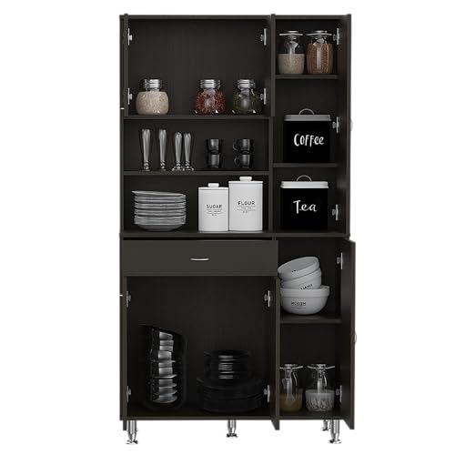 TUHOME Della 90 Kitchen Pantry Engineered Wood Pantries in Black