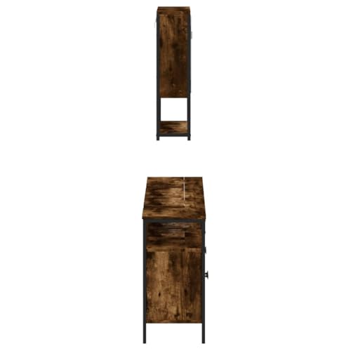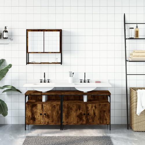 3 Piece Bathroom Furniture Set Smoked Oak Engineered Wood,Elegant Bathroom Furniture Set with Amplified Storage and WallMounted Mirror in Smoked Oak Bathroom Furniture, Bathroom Sets