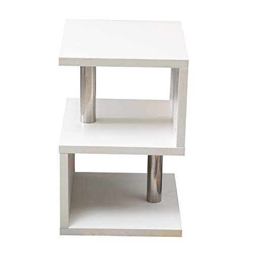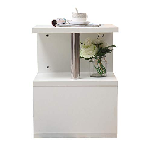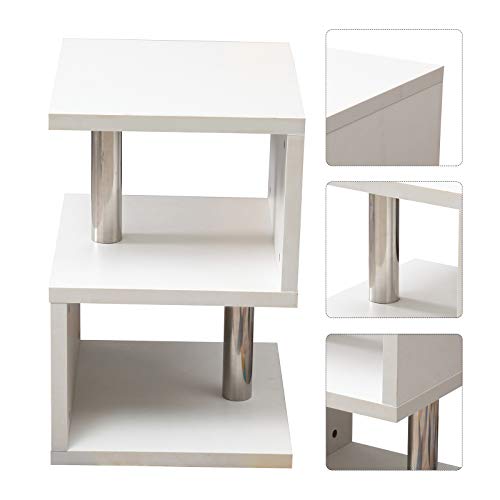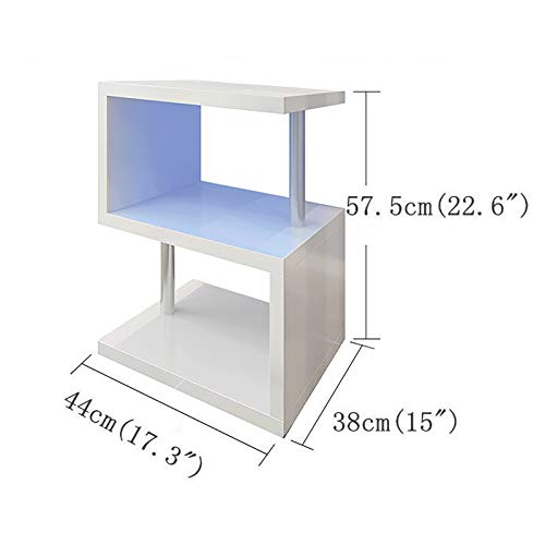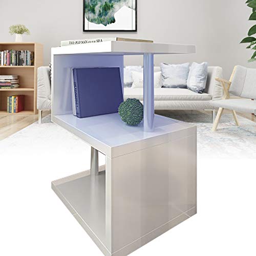 Black Coffee Table with LED Lights, S-Shaped End Table Sofa Side Table Coffee Table with Open Storage Shelf Multi-Purpose Modern High Gloss Nightstand for Living Room, Bedroom (Black)