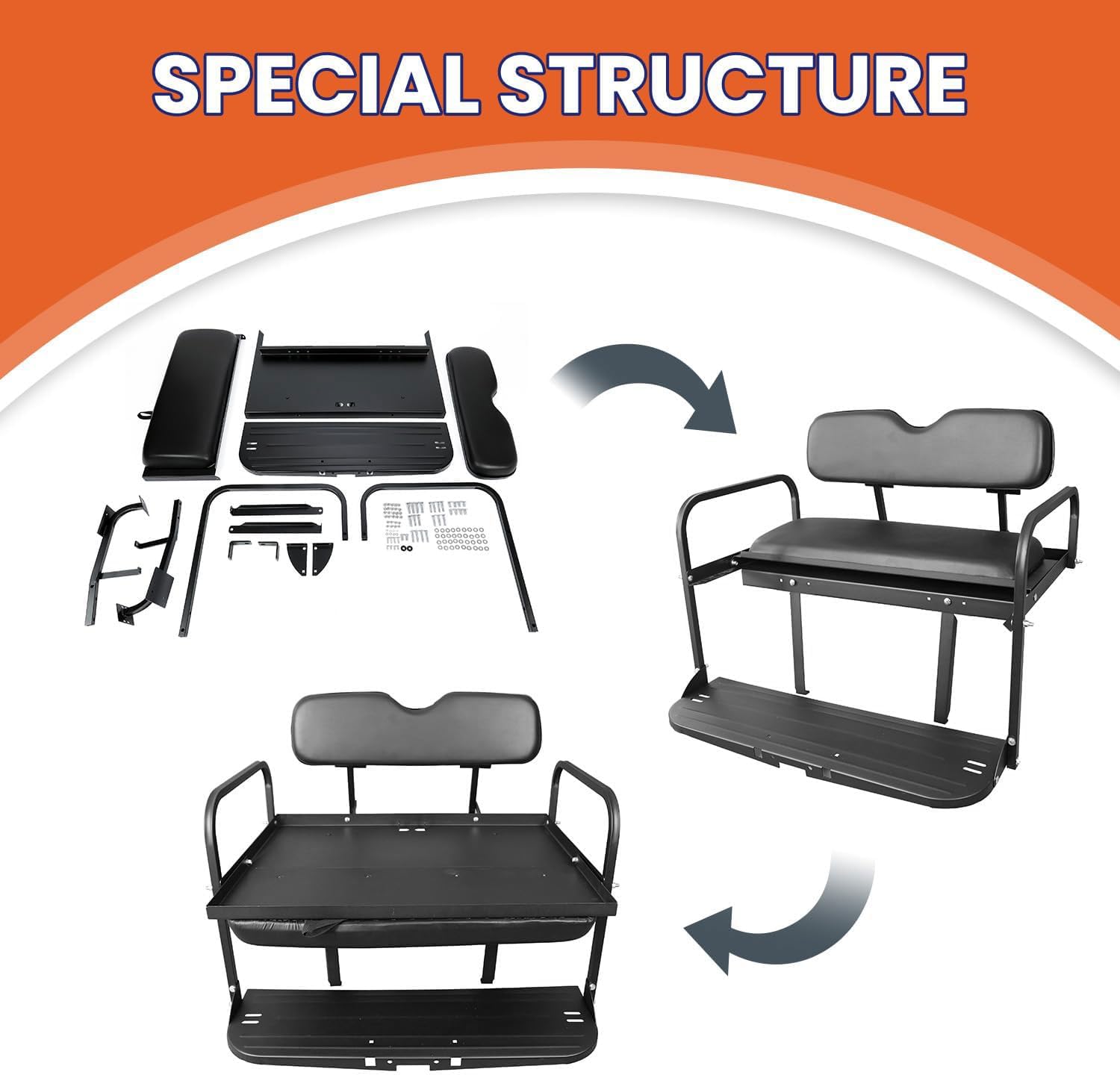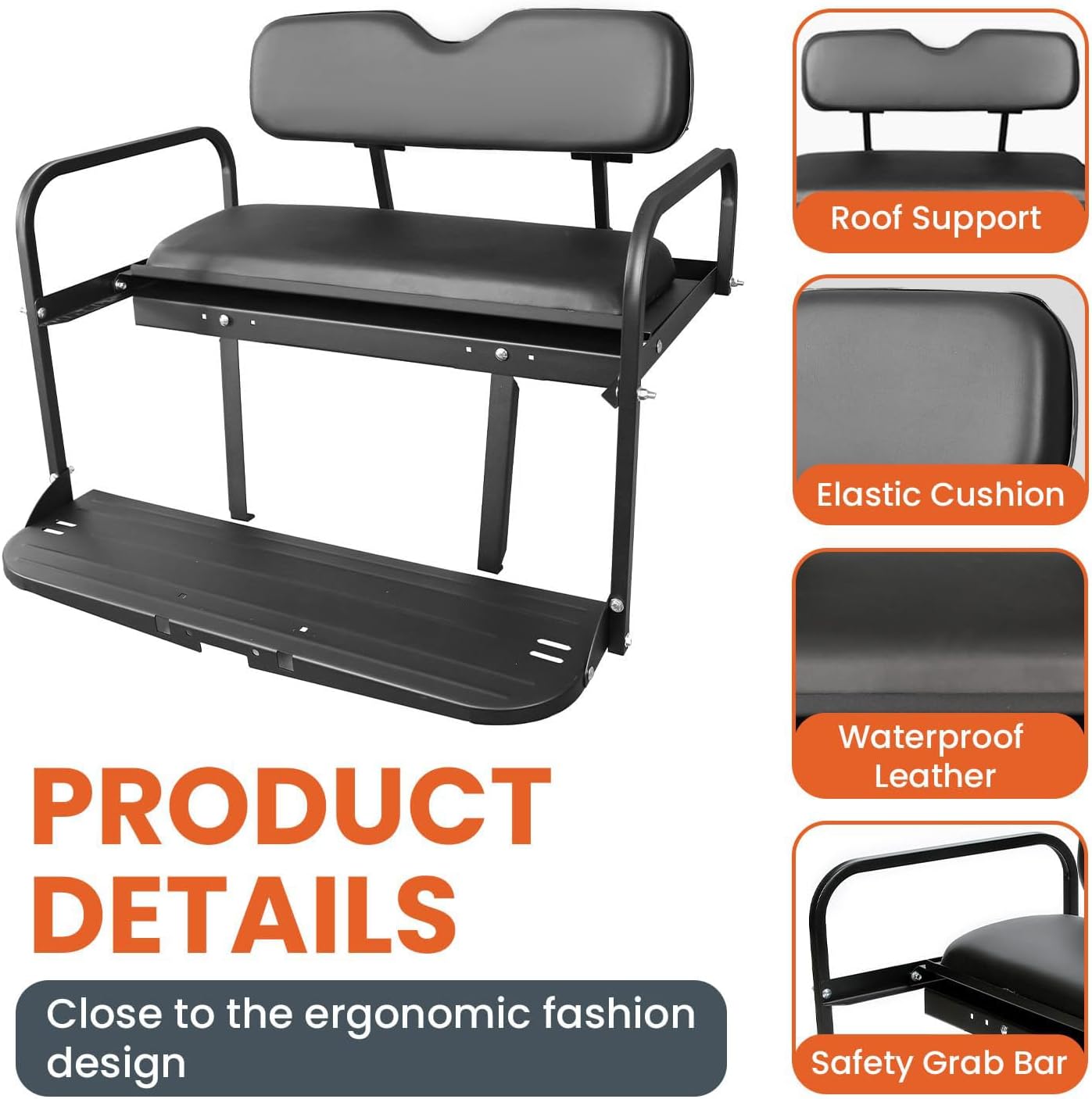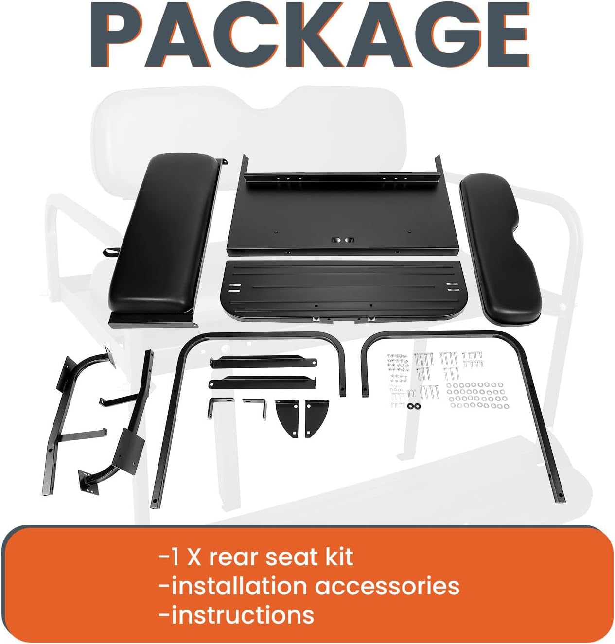 KUAFU Rear Back Seat Kit Compatible with Pre-1994 EZGO Marathon Flip Folding Steel Frame Leather Seat Black