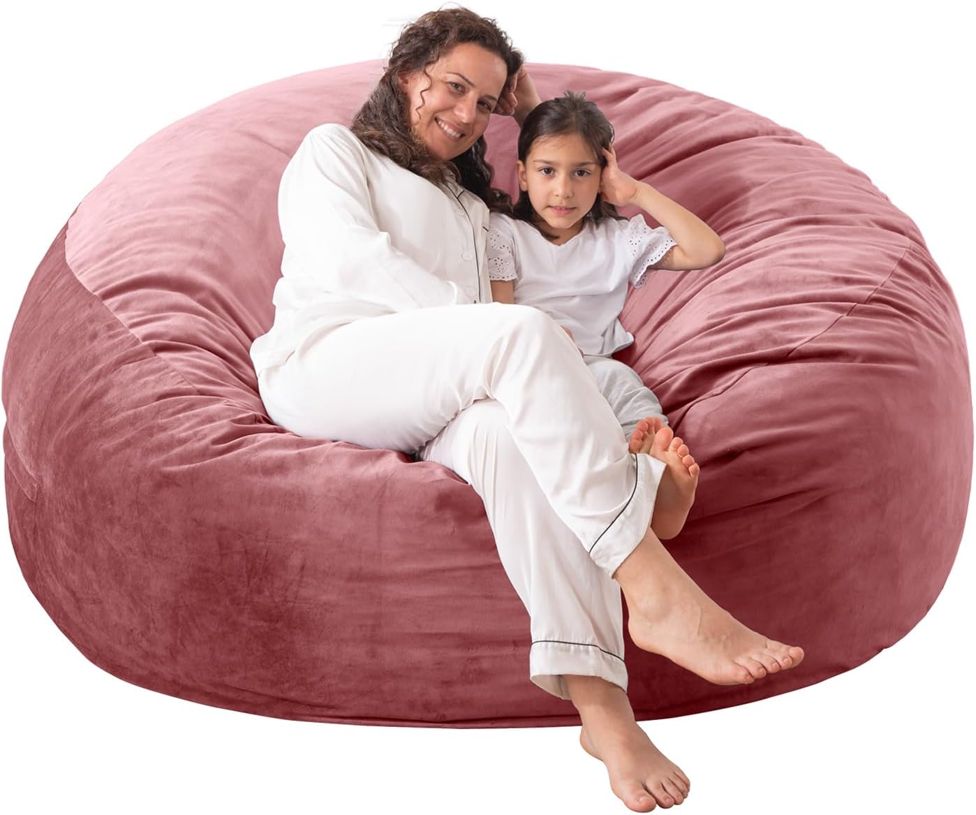 [Velvet Fabric] Large Bean Bag Chair: 4 ft Memory Foam Bean Bag Chairs for Adults with Filling,Adult/Kids Bean Bag Chair with Filler Included,Soft Faux Fur Fabric,Pink,4 Foot
