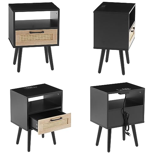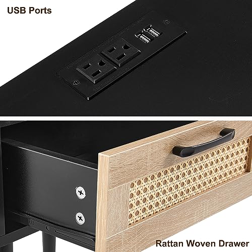 Rattan Coffee Table for Living Room, White Mordern Sofa Center Tables, Solid Wood Leg Rectangle Center Table Sliding Door for Storage Home Furniture