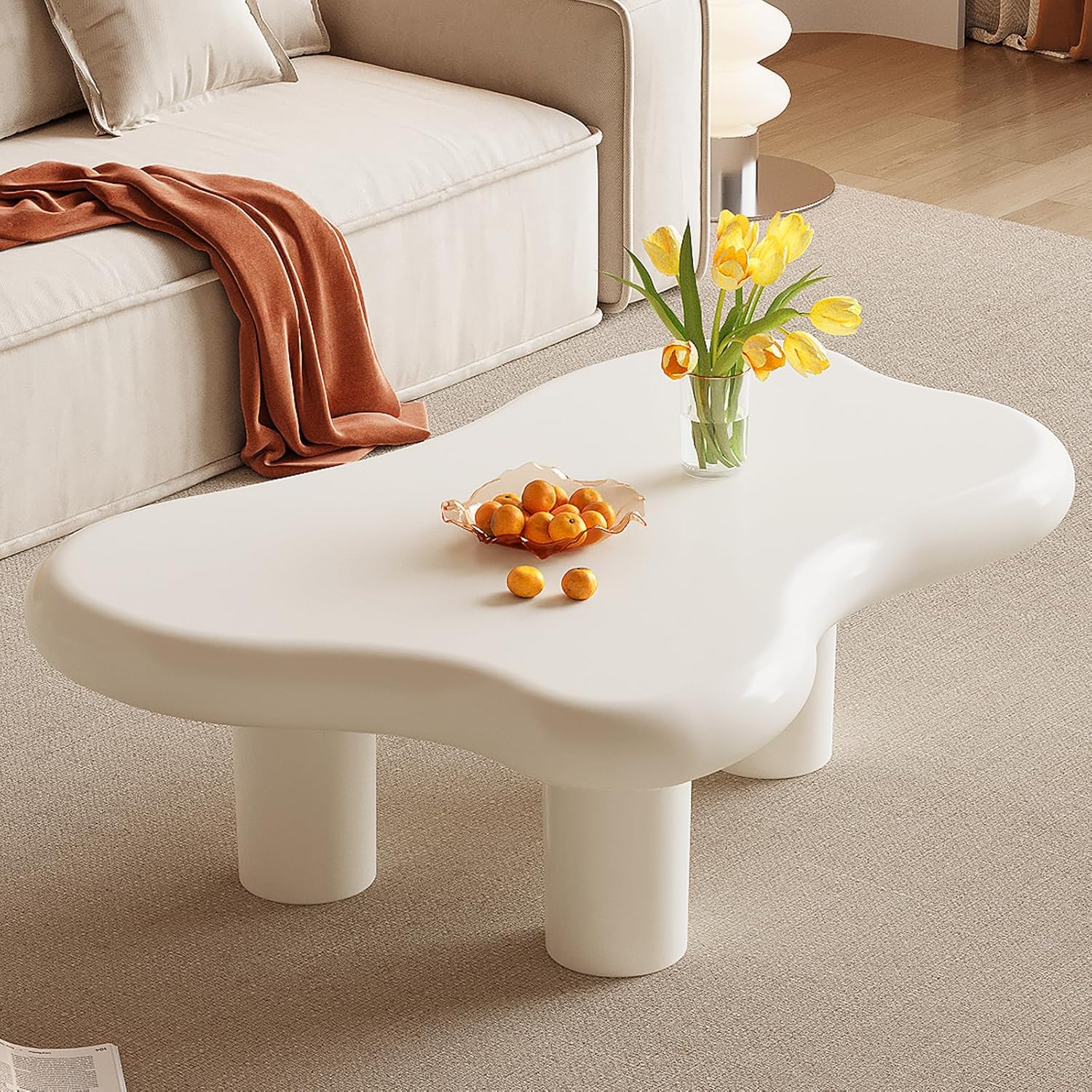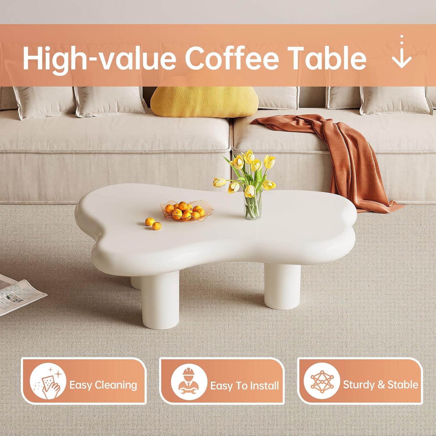 Irregular Shape Coffee Table with 3 Legs,Modern Cream White Center Table,Indoor Cartoon Tea Table for Living Room, Home Office,Bedroom,Easy Assembly