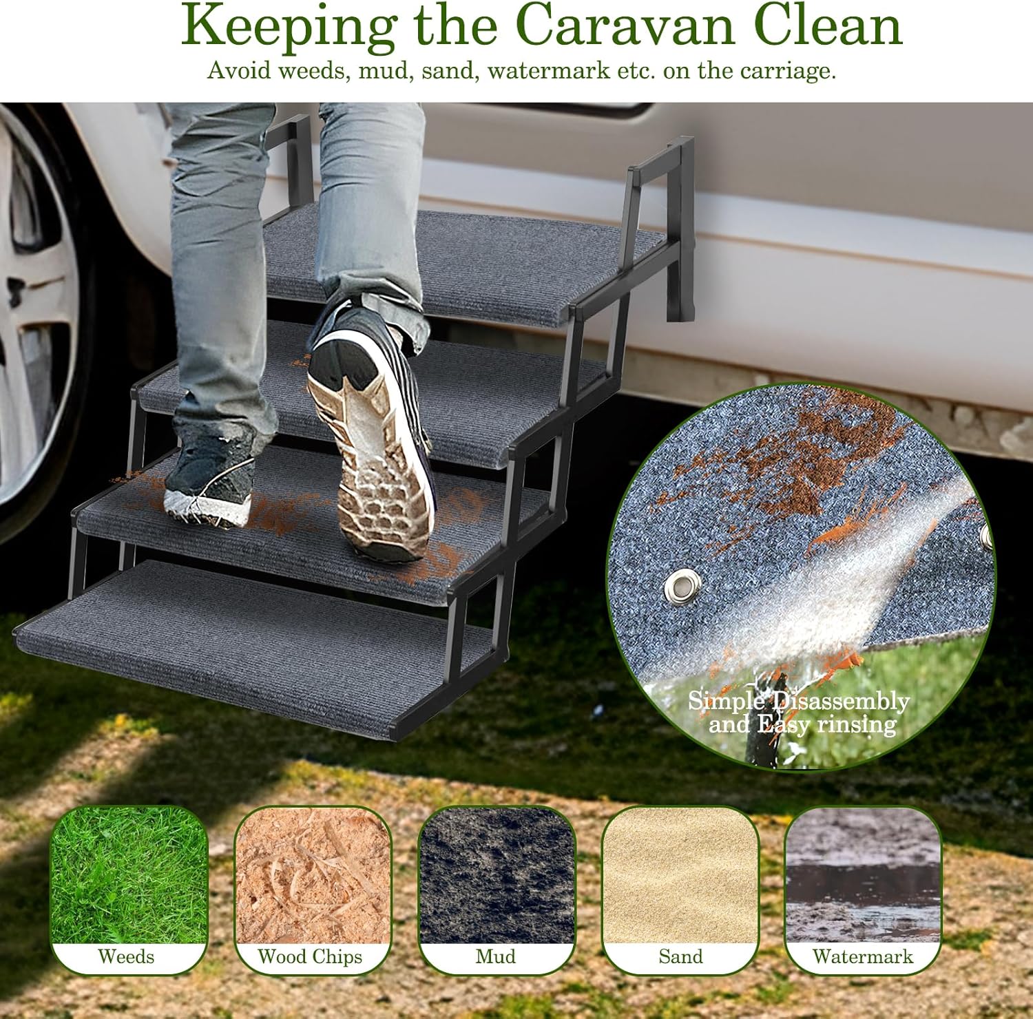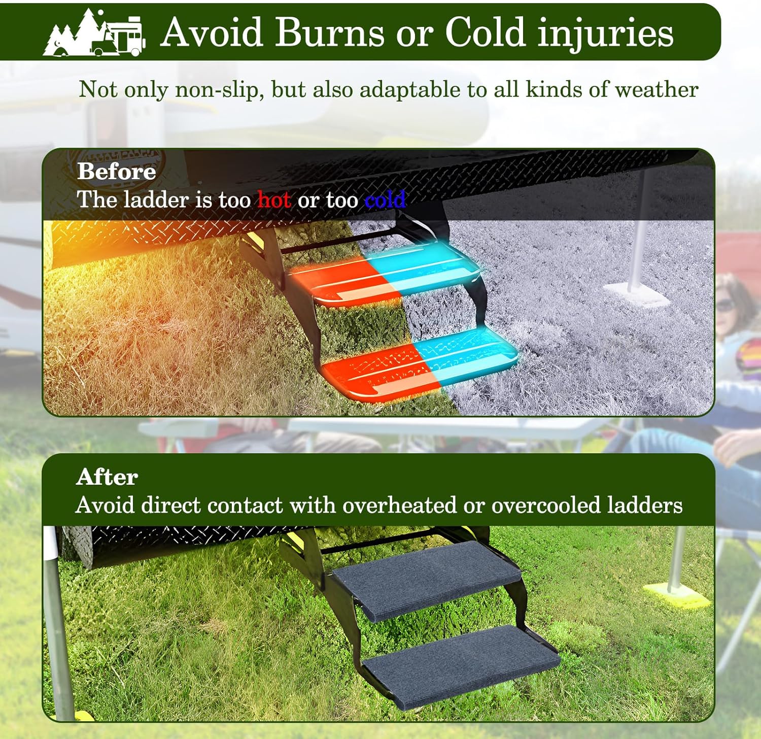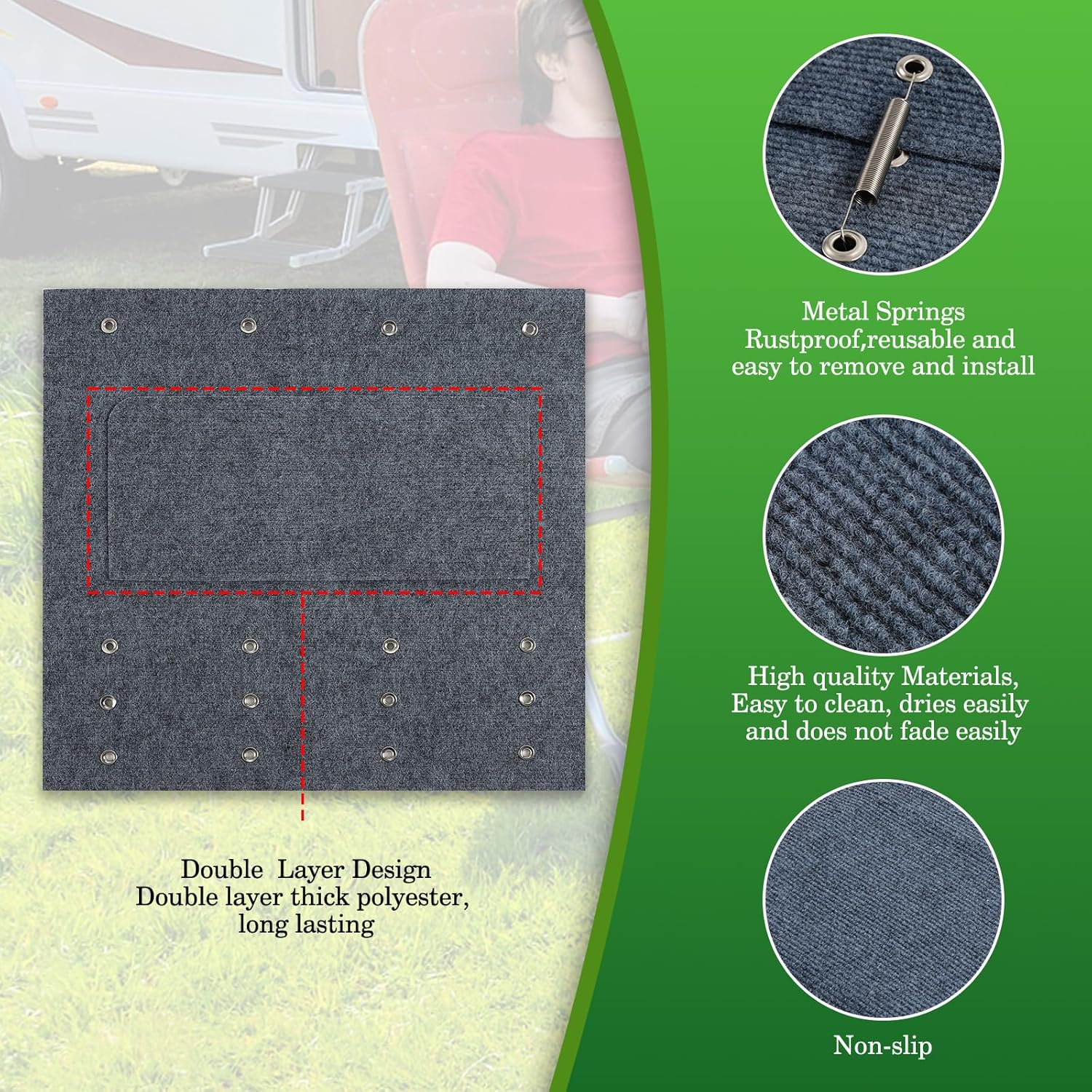 HOMEE RV Step Covers 4 Packs, Camper Step Covers,RV Step Rugs, 23 Inch Wide RV Stair Covers with Install Hook Fit 8" to 11" RV Stair Treads,Non-Slip Outdoor RV Step Carpet,Grey