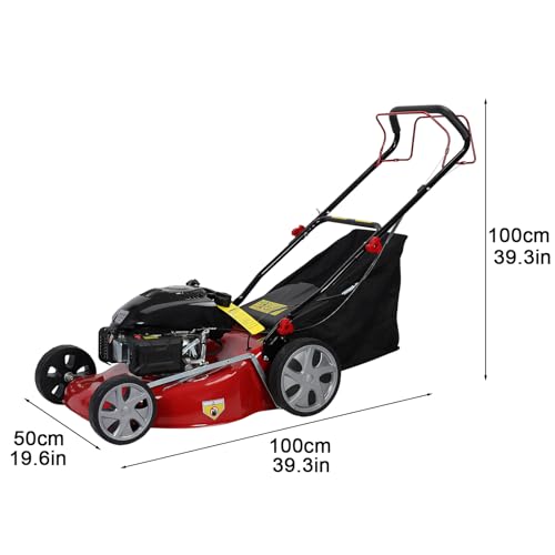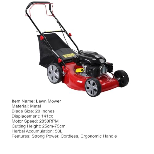 20-Inch Gas Push Lawn Mower | 141CC 4-Cycle Engine | Self Propelled Lawn Mower | Side Discharge | High Rear Wheels | 7-Position Single Wheel Height Adjustment (Red)