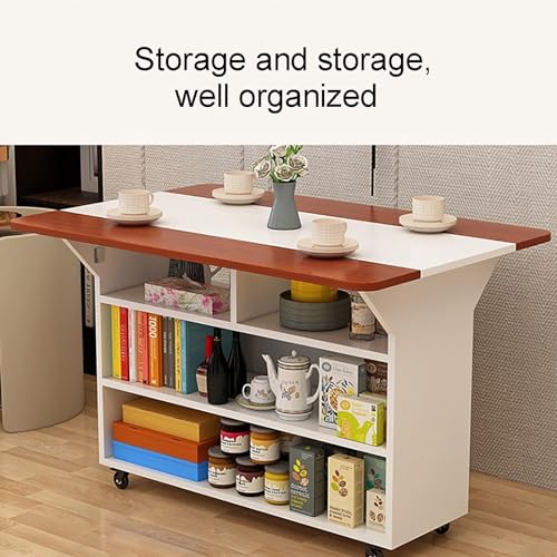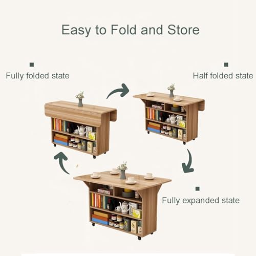 Folding Dining Table Versatile Dinner Table with 2 Tiers of Lockers,2 Shelves,Movable Kitchen Table Extendable Versatile Table Space Saving Foldable in 3 Forms,for Small Space Dining Room Kitchen ( Co