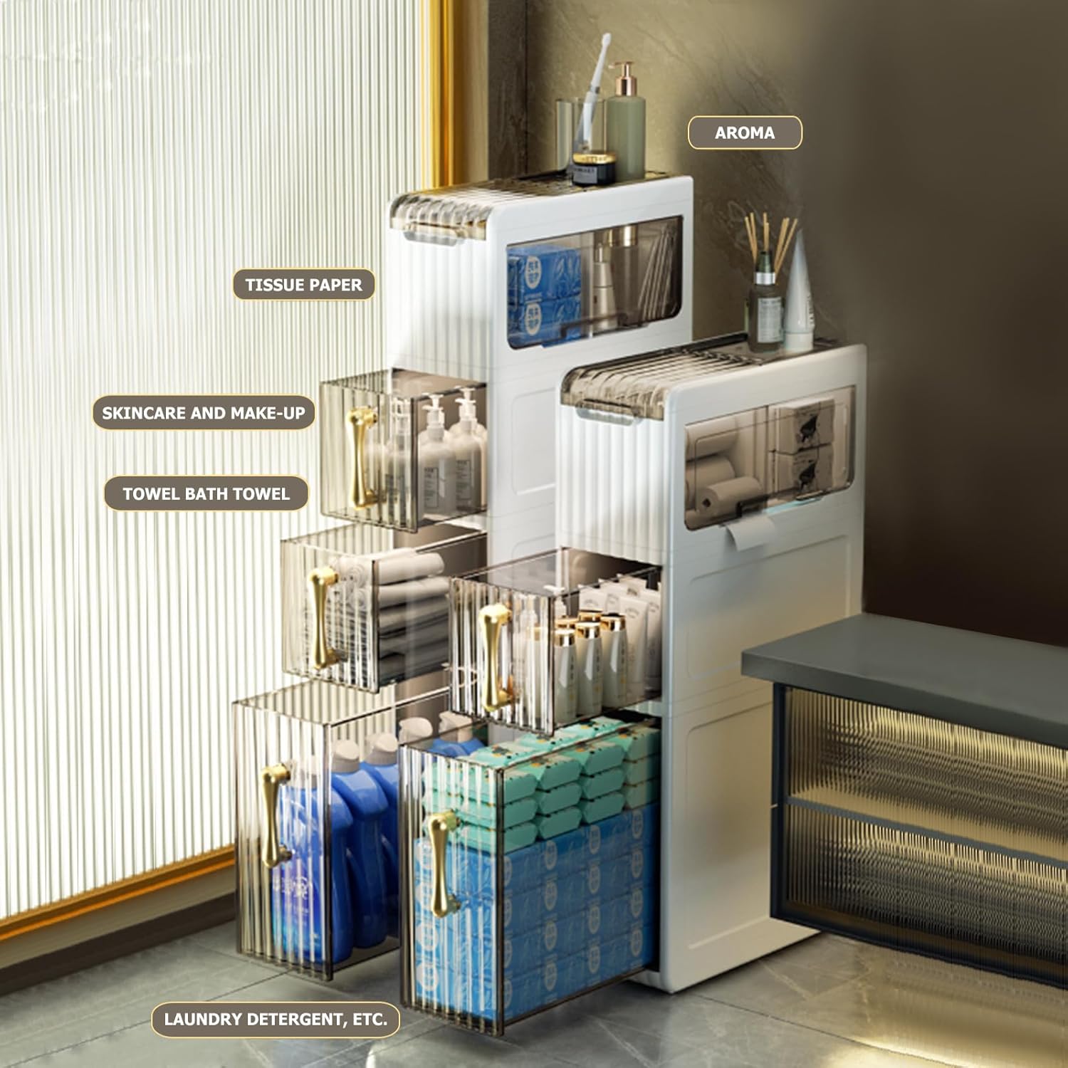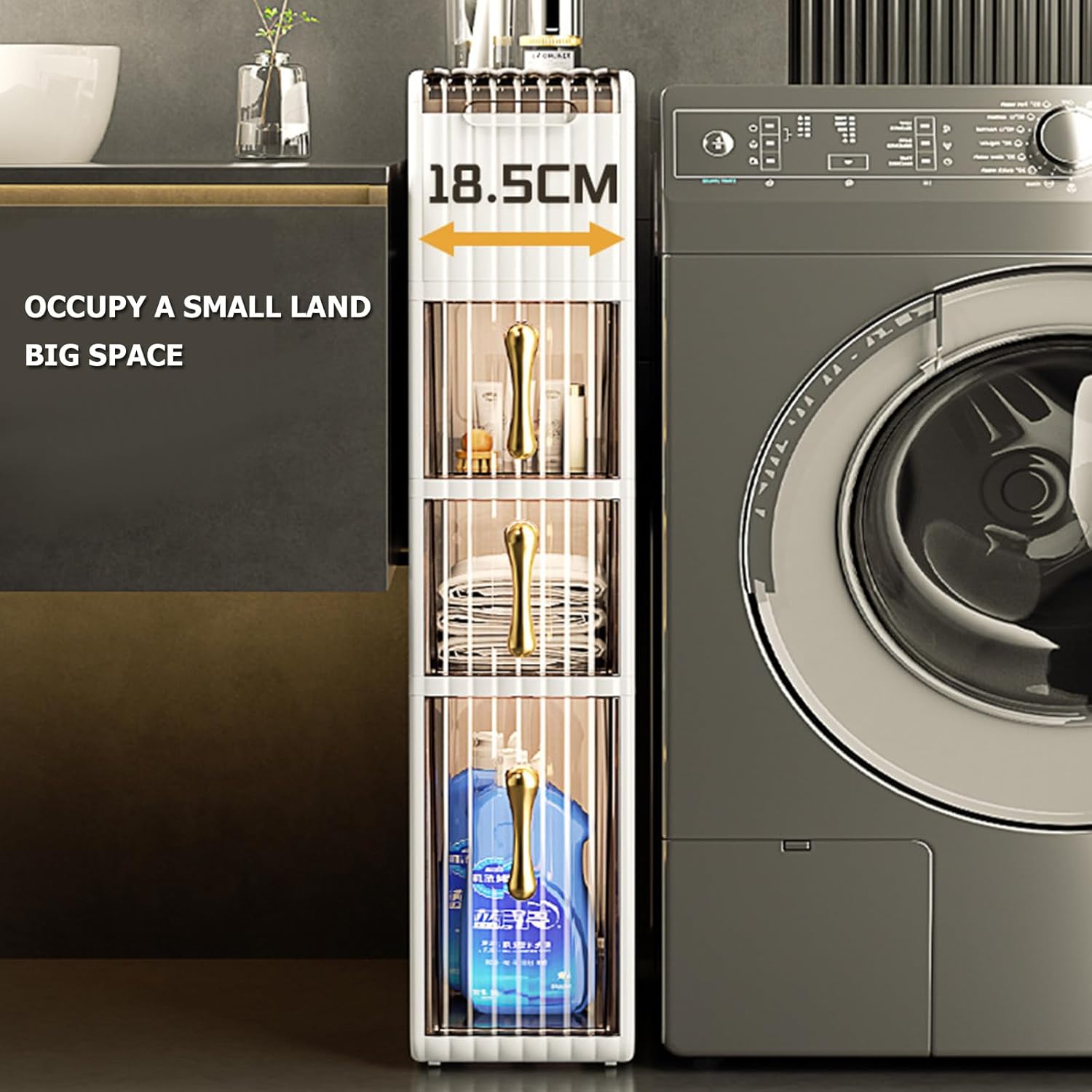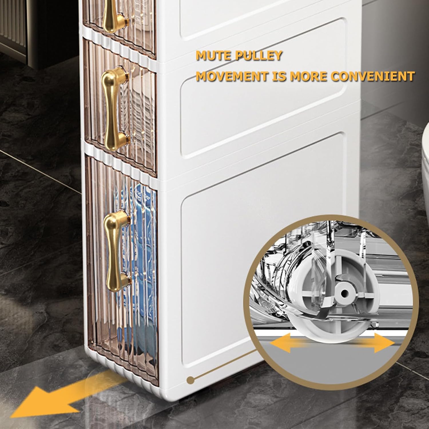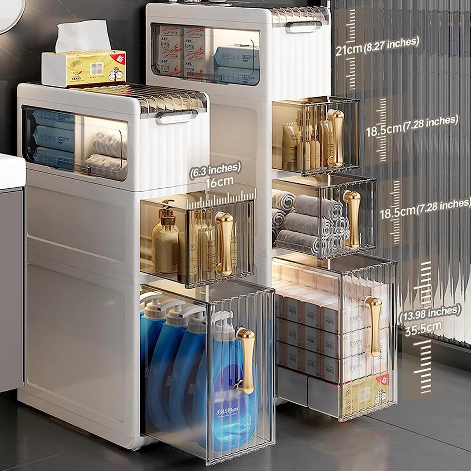 2/3/4 Shelf Bathroom Floor Cabinet Storage Tower Sleek Free Standing Toilet Paper Holder Laundry Room Organization Multifunctional Plastic Drawer Storage for Small Sapce On Kitchen