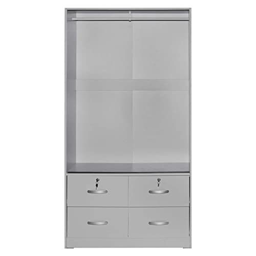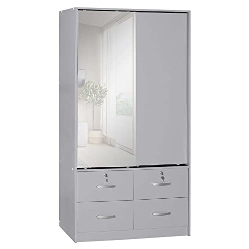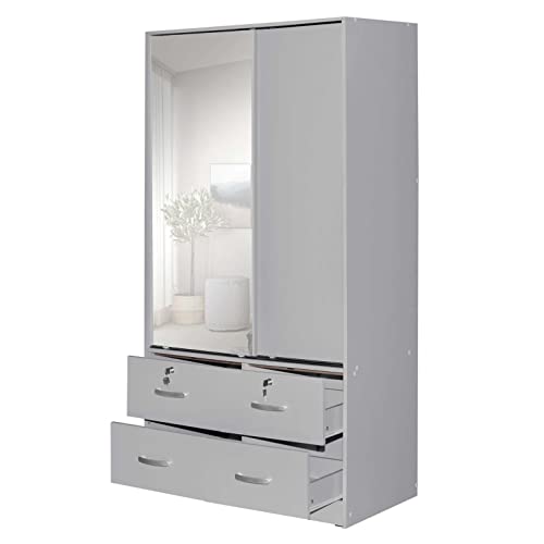 Double Sliding Door Wardrobe with Mirror (Natural Oak)
