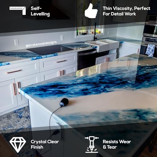 Countertop Epoxy Kit, 1.5 gal, Food Grade Safe, Ultra Durable Heat UV Resistant for Kitchen Counters, Bathrooms, Bar Tops & Tables, Crystal Clear Gloss, DIY Coat, Formica, Wood, Concrete
