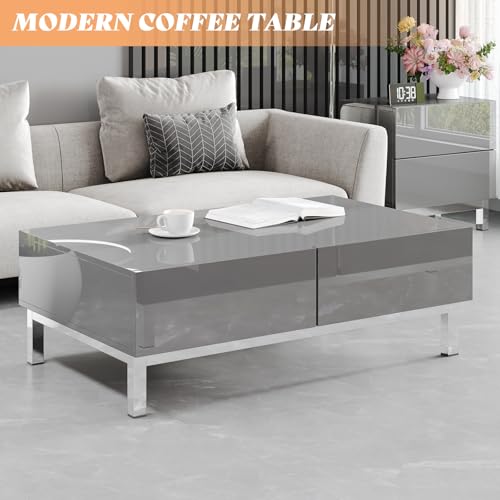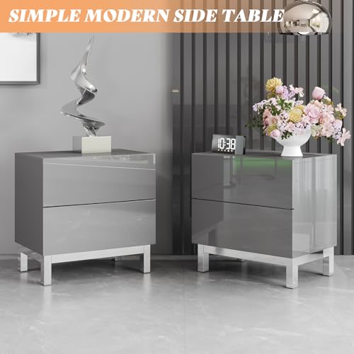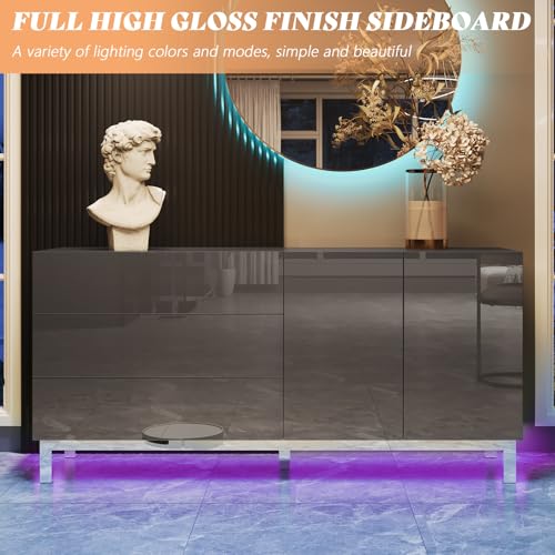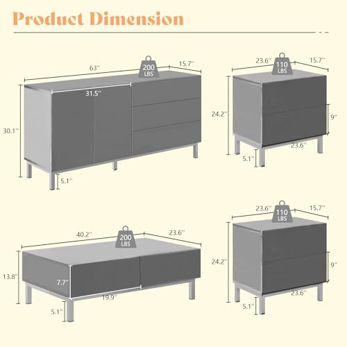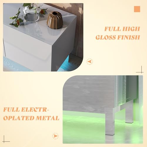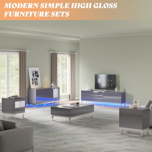 AMERLIFE 5-Piece Modern High Gloss Living Room Table Sets, Includes 1 X Modern Minimalist LED TV Stand, 1 X Sideboards with LED Lights, 1 X Coffee Table, 2 X Side Tables with Storage Shelves, White