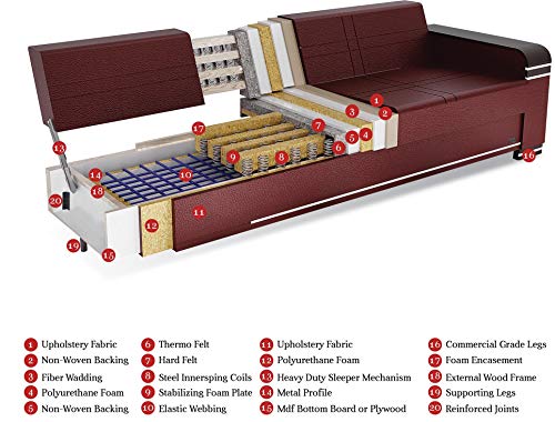 Empire Furniture USA LS-Rochester Rochester Collection Convertible Sofa Bed with Storage Space Includes 2 Pillows, Brown