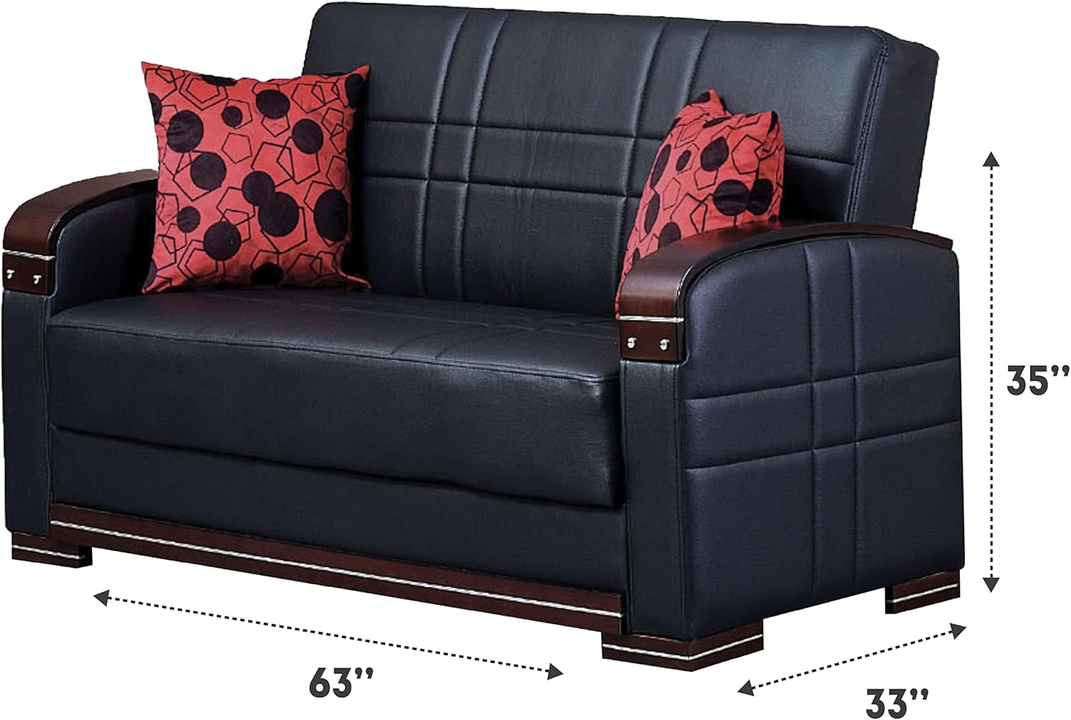 Empire Furniture USA Bronx Collection Convertible Loveseat with Storage Space, Includes 2 Pillows, Black
