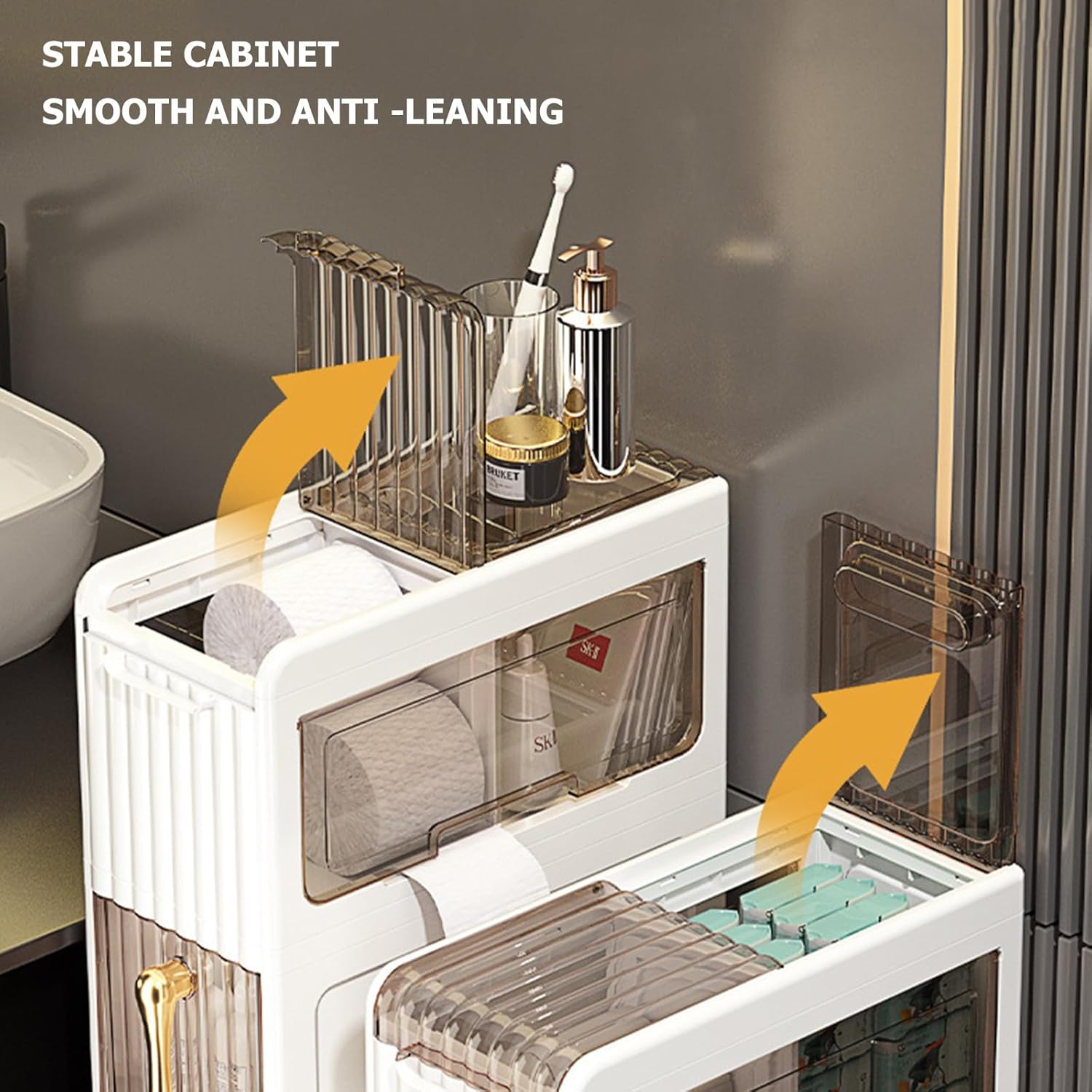 Narrow Bathroom Floor Storage Cabinet Large Capacity Slim Toilet Paper Storage Cabinet Slim Storage Organizer with Drawers and Casters for Tiny Kitchen Laundry Living Room Toilet G