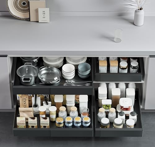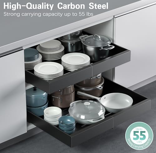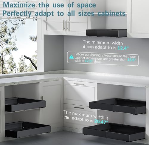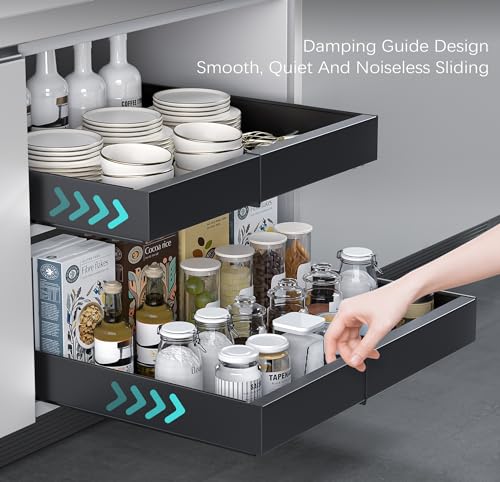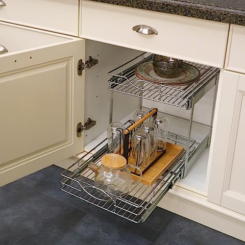 Pull Out Cabinet Organizer 20" W x 21" D 2-Tier Individual Slide Out Drawer Pantry Shelf Storage for Kitchen Base Cabinet Organization for Kitchen, Bathroom, Pantry, Chrome