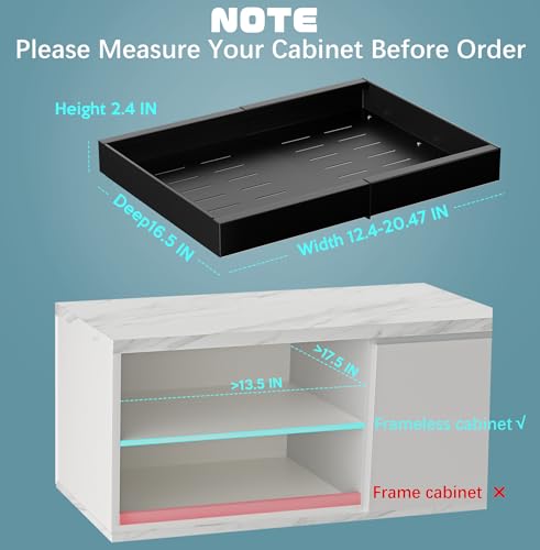 Expandable Pull Out Cabinet Organizer Adhesive,2Pack Peel And Stick Slide Out Drawer for Kitchen Cabinet,Cabinet Pull Out Shelves For Kitchen Pantry Organization Adjustable Width 12.5"-20.5" White