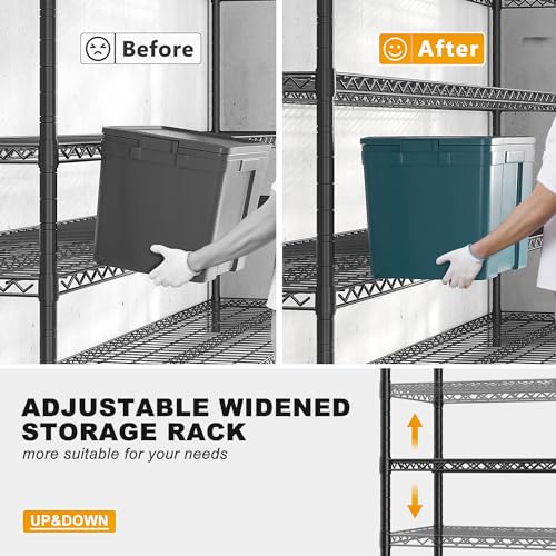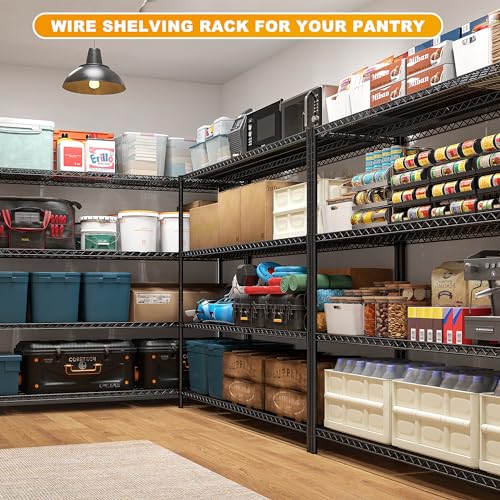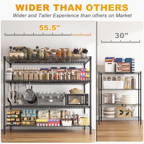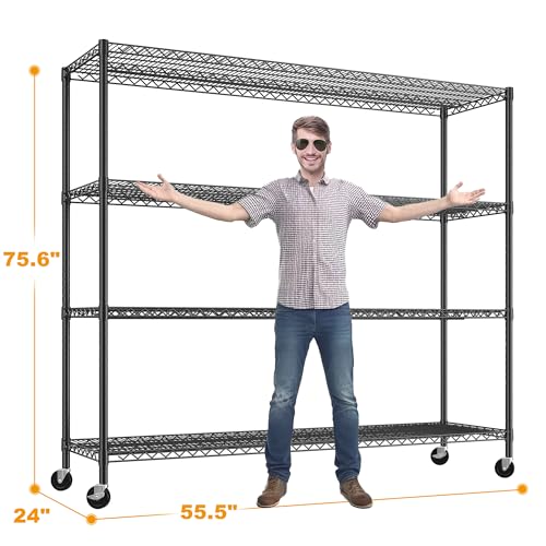 REIBII 55.5''W Storage Shelves 2500LBS Wire Shelving Rack with Wheels 75.6" H Heavy Duty Shelving Unit Adjustable Metal Shelves for Storage Rack Shelving for Kitchen Pantry 2PCS