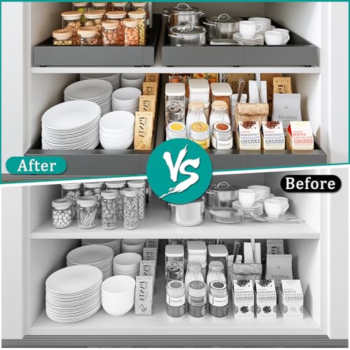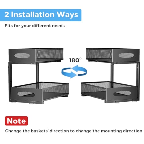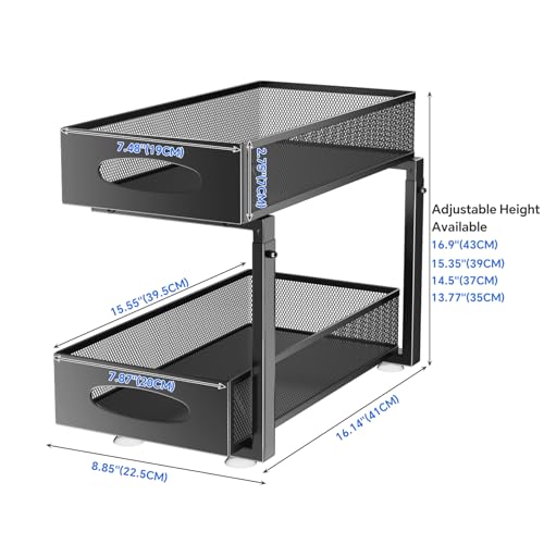 Under Sink Organizer, 2 Tier Pull out Cabinet Organizer Baskets with Mesh Sliding Drawers, Slide out Storage Shelf for Home, Kitchen, Bathroom, Pantry, Office Cabinet, Countertop(1 Pack)