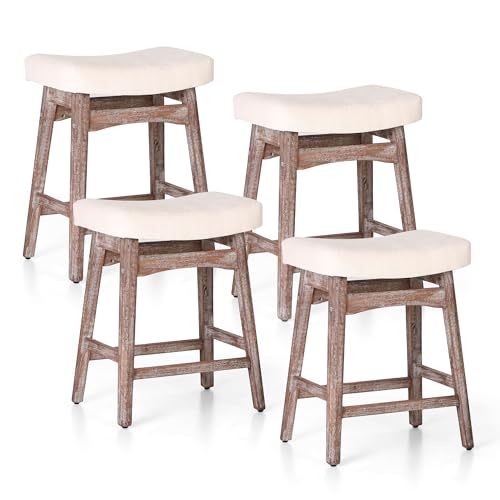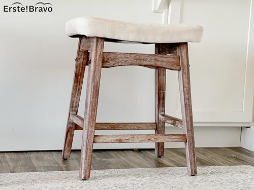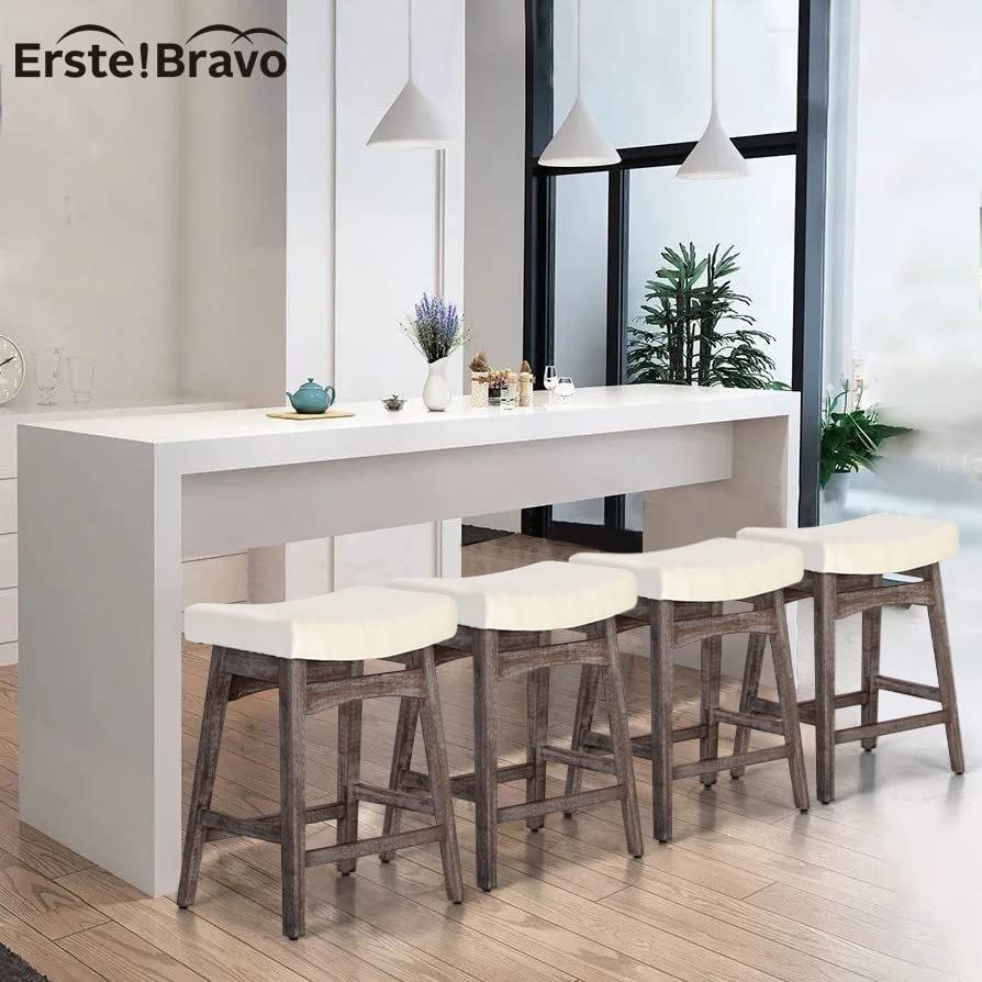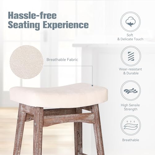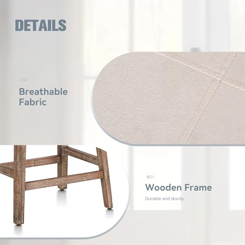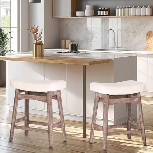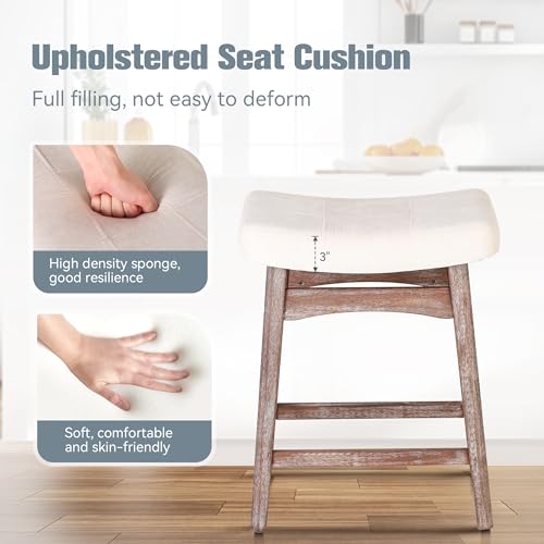 White Solid Wood Bar Stools Set of 2 for Kitchen Counter Counter Height Farmhouse Barstools with Faux Leather Modern Upholstered Stools for 34"-38" Island, Off White Cushion, White Legs