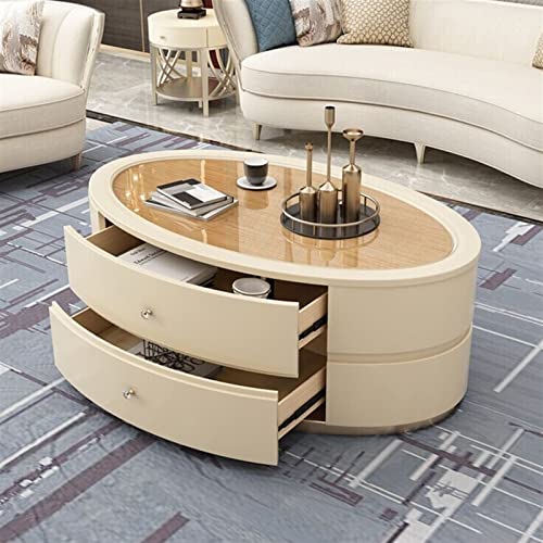 Tea Table for Living Room Modern Coffee Table with Unique Table Top and Stable Base, Oval Sofa Table Center Table with 2 Large Drawers for Living Room and Office Coffee Table (Color : Brass, Size :
