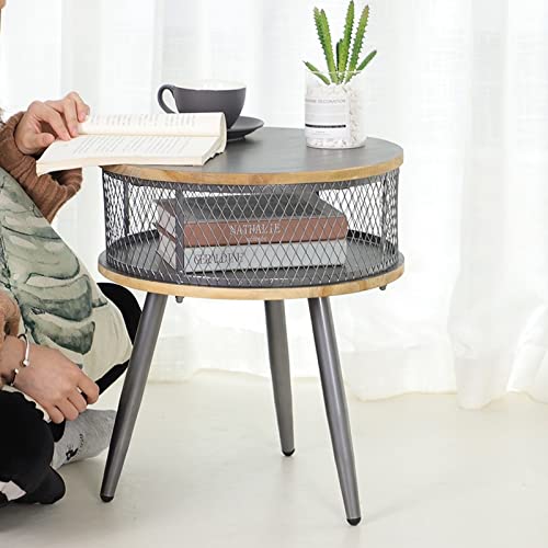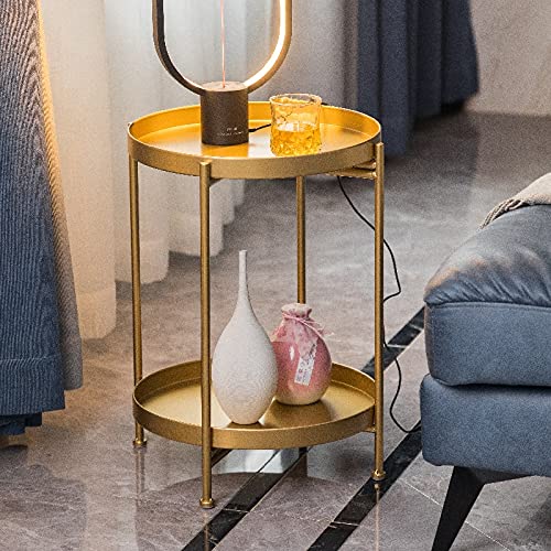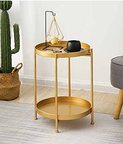 Tea Table for Living Room Bedside Coffee Table for Living Room Furniture Folding End Table Small Iron Metal Double Sofa Side Table with Round Tray Storage End Tables End Tables (Color : Golden)