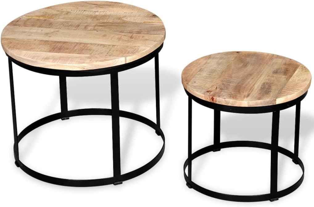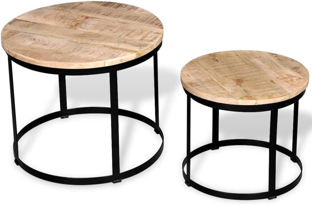 Two Piece Coffee Table Set Rough Mango Wood Tea Table for Living Room Round 19.7" x 19.7" x 16.1"