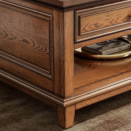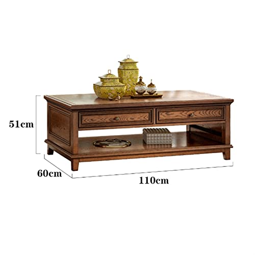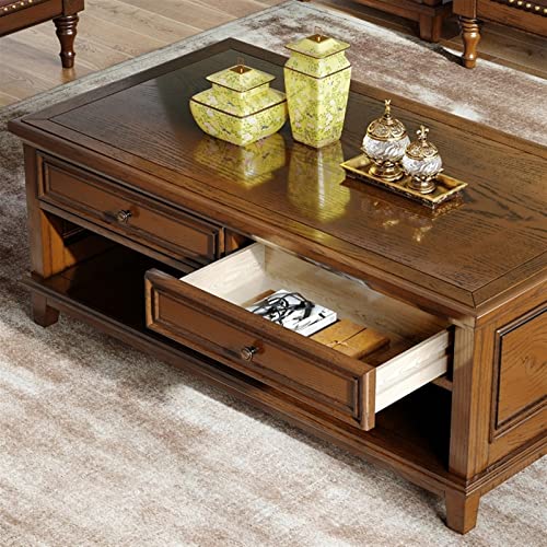 Tea Table for Living Room Wooden Coffee Table with Drawers and Shelves, Rectangular Vintage Coffee Table, Living/Office Vintage Cocktail Table Coffee Table (Size : L 1.2m)