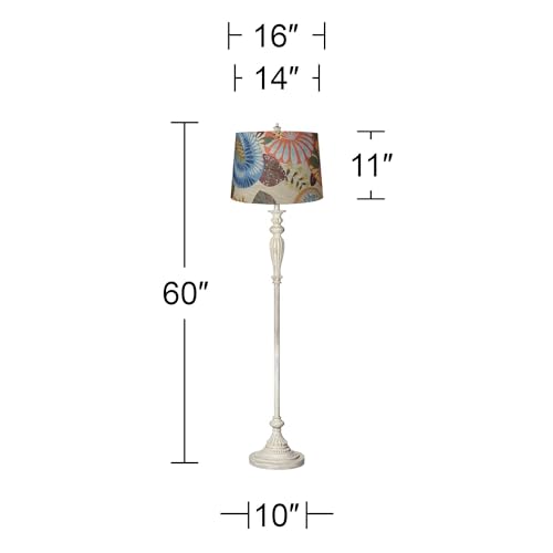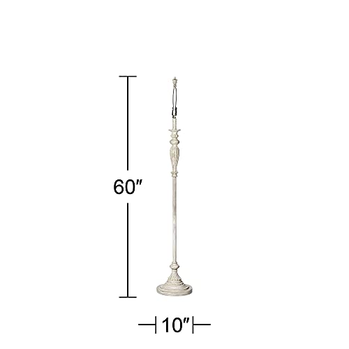 360 Lighting Traditional Vintage Shabby Chic Standing Floor Lamp 60" Tall Antique White Washed with Tan Burlap Tapered Drum Shade Decor for Living Room Reading House Bedroom Family Home
