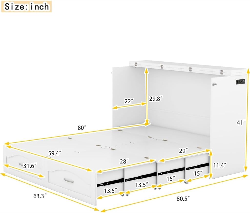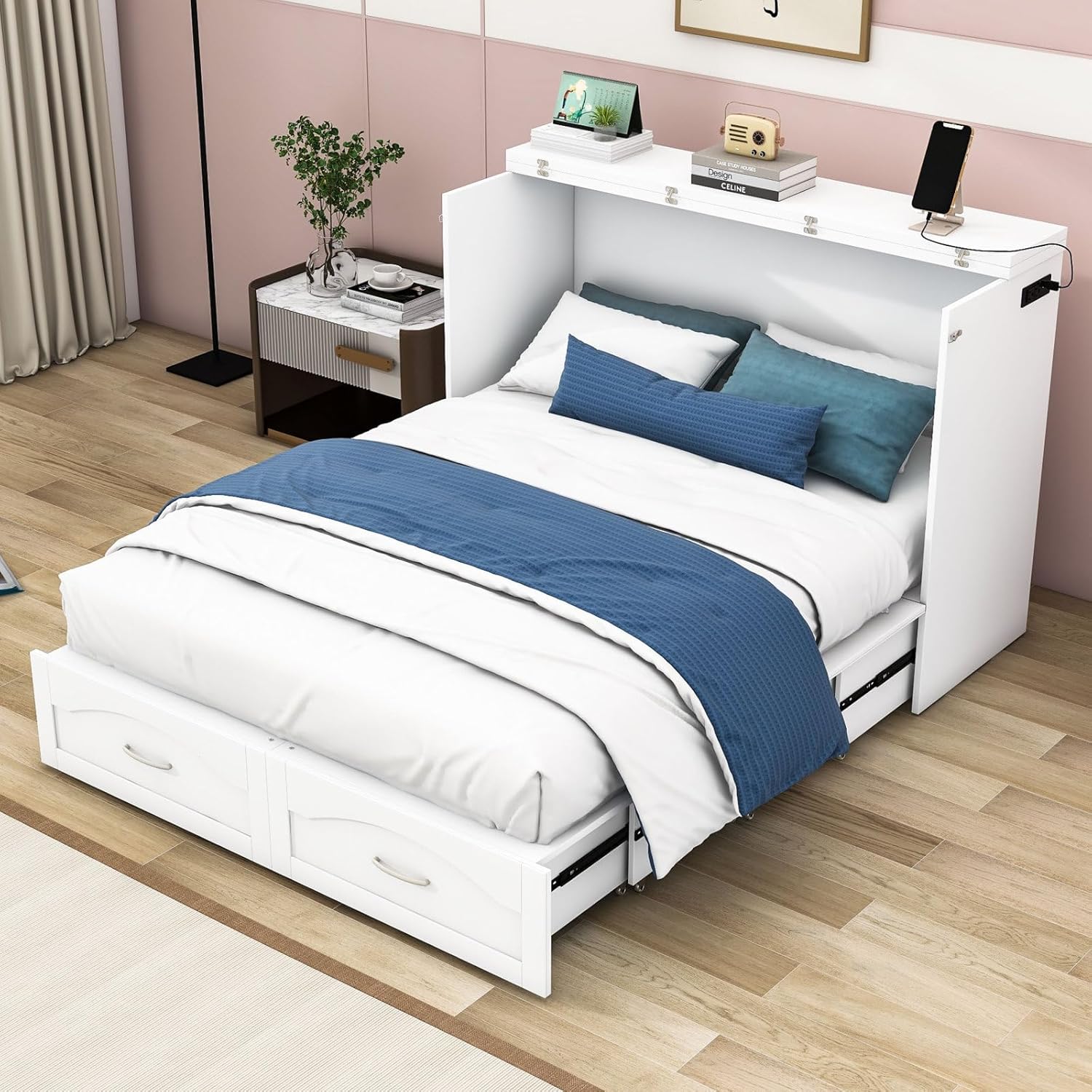 Revolutionary Transformable Full/Queen Murphy Wall Bed, Whaite