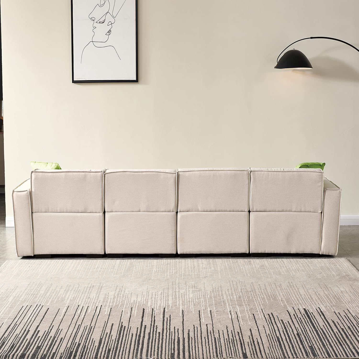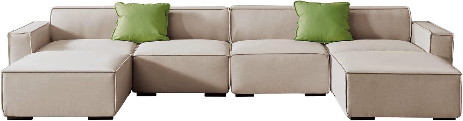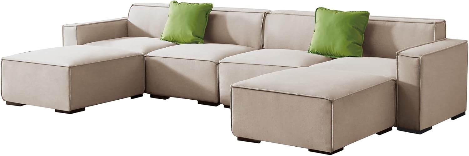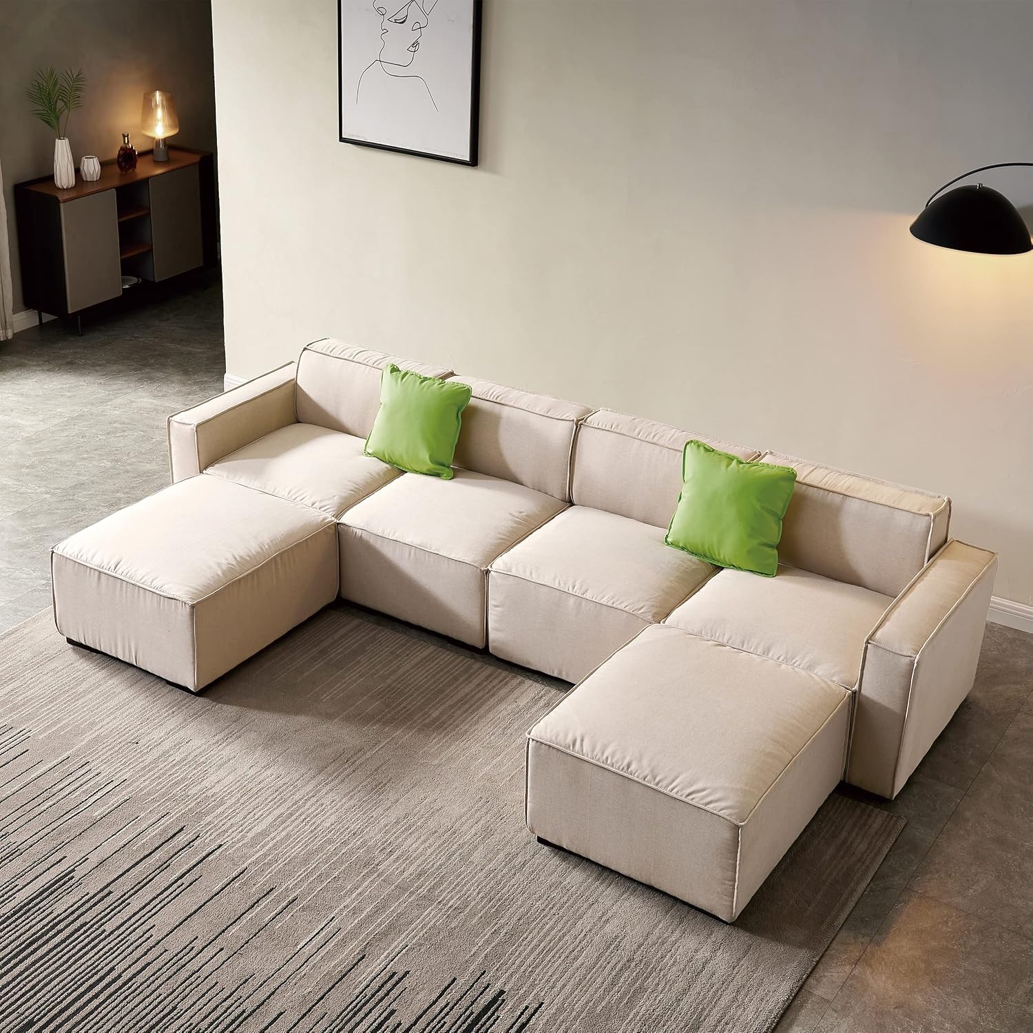 WILLIAMSPACE 131" Sectional Sofa for Living Room, Modular Convertible U Shaped 6 Seat Couch with 2 Pillows, Modern Luxury Sofa with Oversized Soft Seat and Ottoman Chaise, Beige