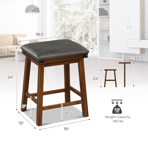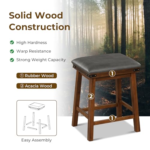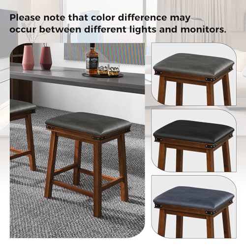 Giantex 24" Counter Height Bar Stools Set of 4, Faux PU Leather Farmhouse Wood Barstools with Padded Seat, Solid Wood Frame, Max Load 330 Lbs, Saddle Stools for Kitchen Island Pub, Brown
