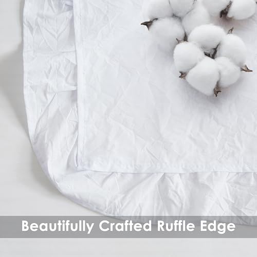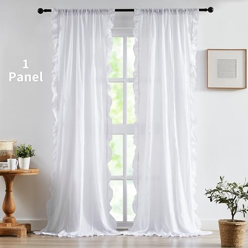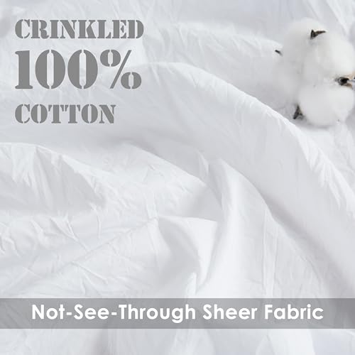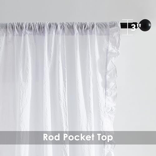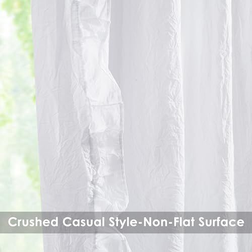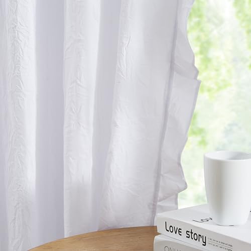 White Boho Cotton Curtains with Ruffle Edge 84 Inches Length,Not-See-Through Crinkled Fabric Drape,Shabby Chic Window Treatment for Bedroom Living Room Canopy Bed,Rod Pocket,40"Wx84"L,2 Panels