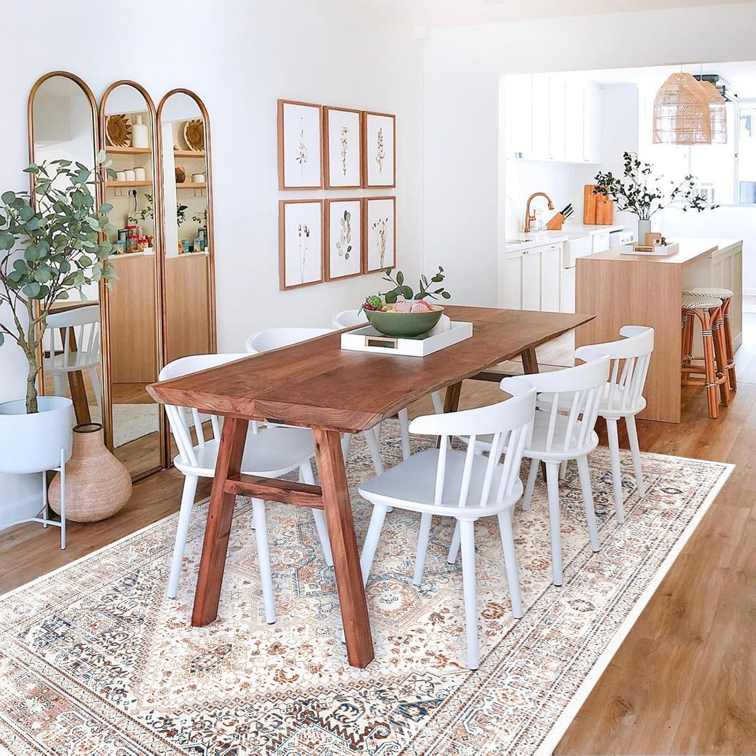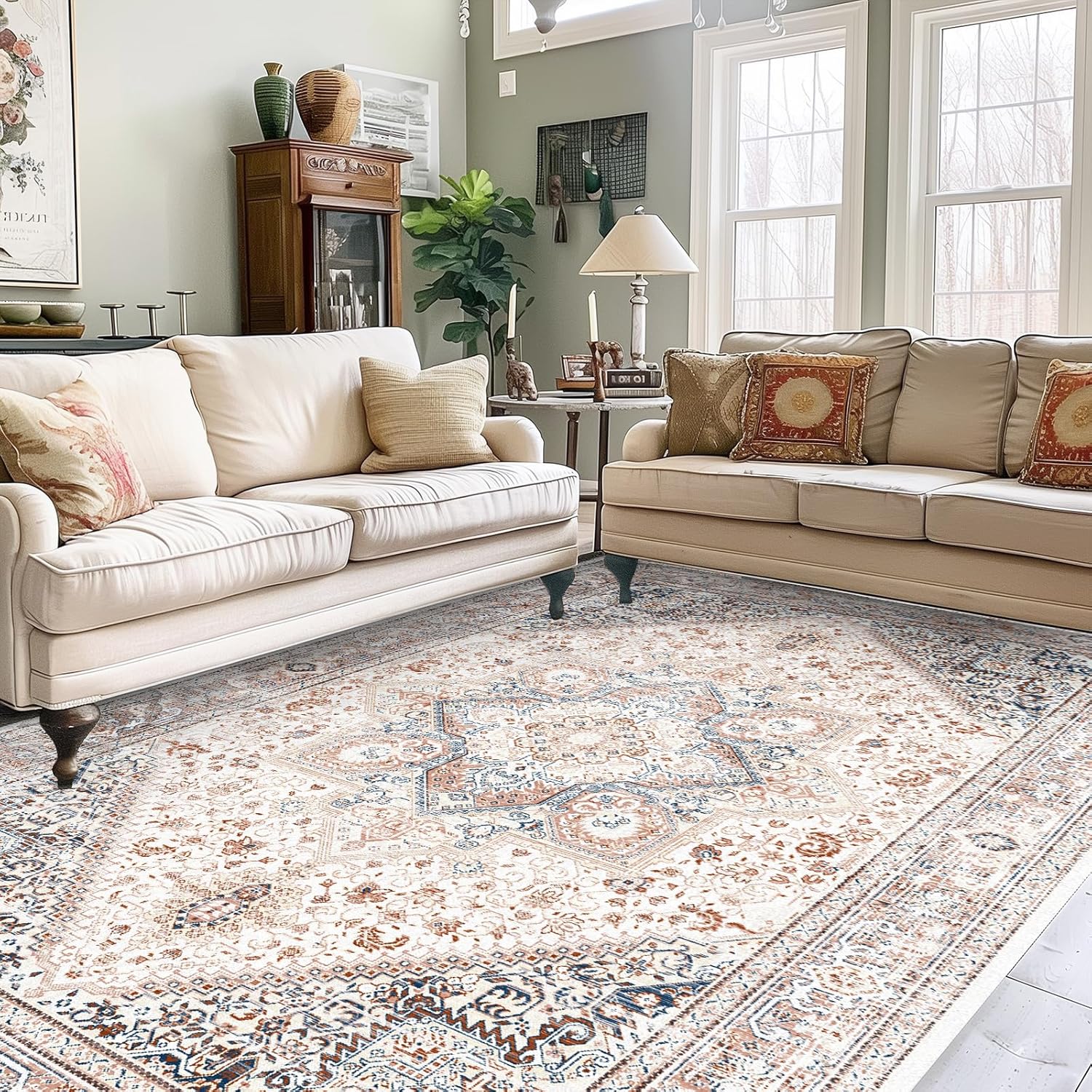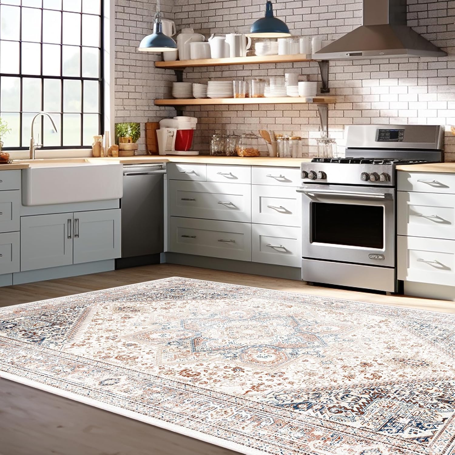 Area Rug 5' X 7' Vintage Rug Boho Medallion Floor Cover Retro Accent Elegant Carpet Non Slip Shabby Chic Farmhouse Washable Rug for Living Room Bedroom Dining Room Indoor/Outdoor