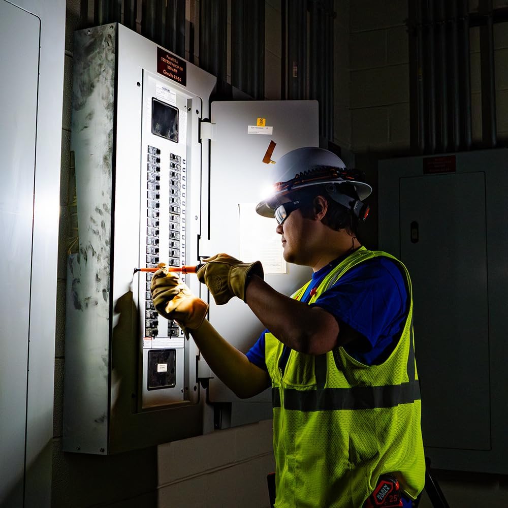 Klein Tools 56064 Rechargeable Auto-Off LED Headlamp, Silicone Strap, 400 lms, All-Day Runtime, for Work, Running, Outdoor Hiking, Camping