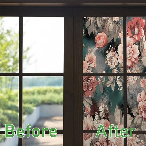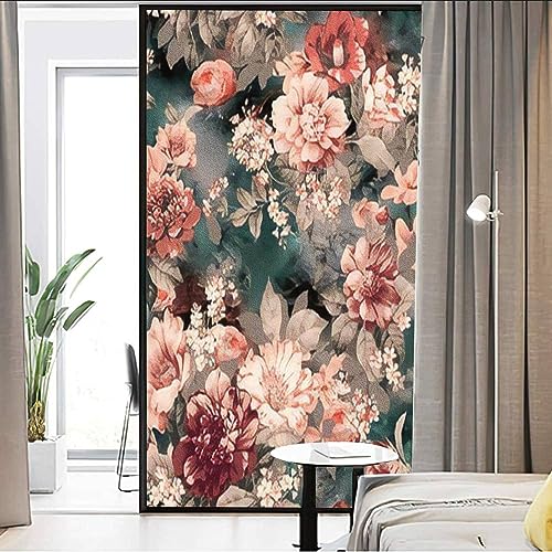 Window Privacy Film Floral Seamless can be Used for Website Textile Printing Drawn Endless Front Door Office Shower Bathroom Privacy Film Summer Decorative Blackout 3D Window Decals, 35.4" x 78.7"