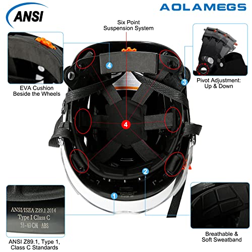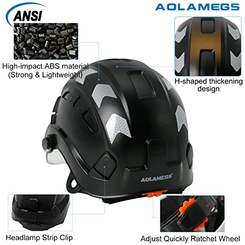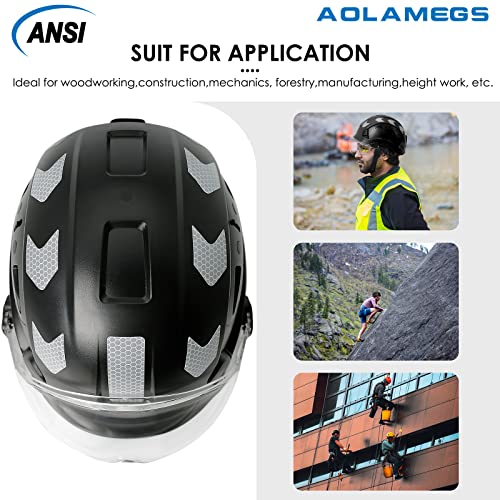AOLAMEGS Construction Safety Hard Hat - ANSI Z89.1 OSHA Approved Safety Helmets with Chin Straps Lightweight Reflective Vented ABS Hard Hats for Men Women Industrial Workwear 6-point Suspension