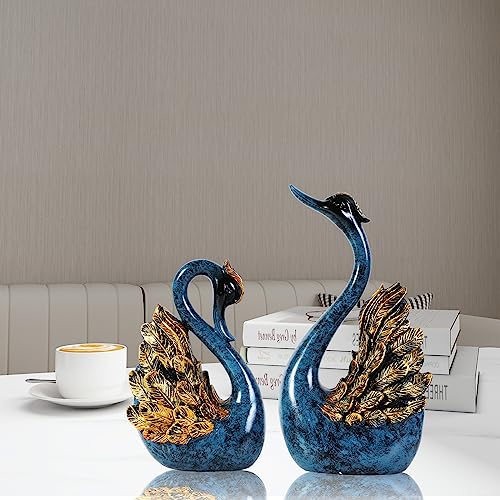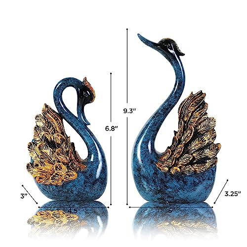 2pcs Swan Statues Couple's Home Decorations for Living Room Decor and Accessories, Sculptures Home Decor for Coffee Table, Book Shelf Decor Accents (Gold)