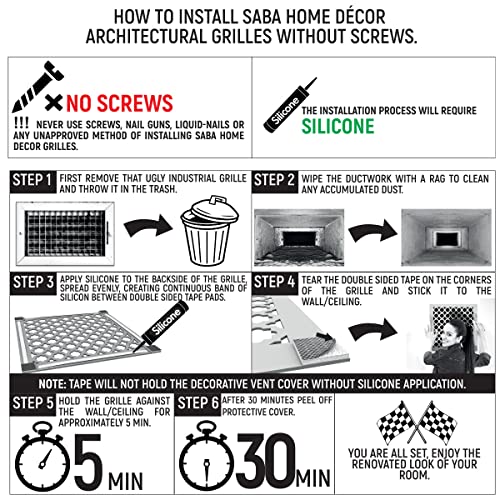 SABA Home Decor Air Vent Cover Grille - Acrylic Fiberglass 6 x 14 Duct Opening (8 x 16 Overall) White Finish Decorative Register Covers for Walls and Ceilings, Charlotte (6 x 14, White)