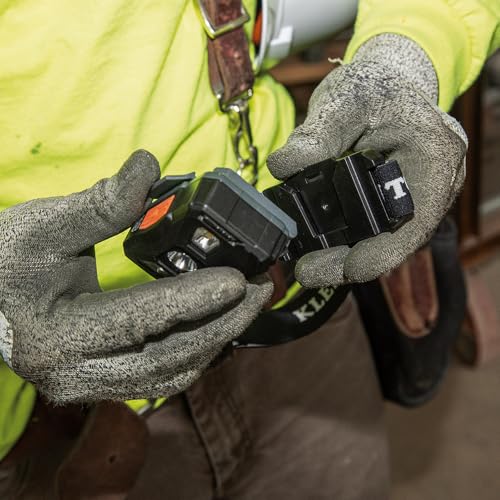 Klein Tools 56048 Rechargeable Auto-Off LED Headlamp, Adjustable Fabric Strap, 400 lms, All-Day Runtime, for Work, Running, Outdoor Hiking