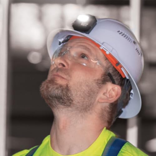 Klein Tools 60406RL Hard Hat, Rechargeable Headlamp, Non-vented, Full Brim Style, Padded Self-Wicking Odor-Resistant Sweatband, Tested up to 20kV, White