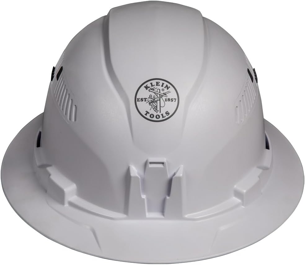 Klein Tools 60401 Hard Hat, Vented, Full Brim Style, Padded, Self-Wicking Odor-Resistant Sweatband, White