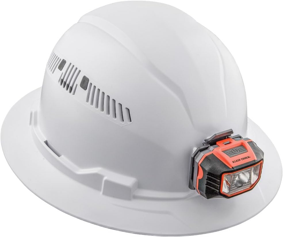 Klein Tools 60407 Hard Hat, Light, Vented Full Brim Style, Padded, Self-Wicking Odor-Resistant Sweatband, White