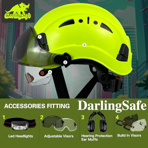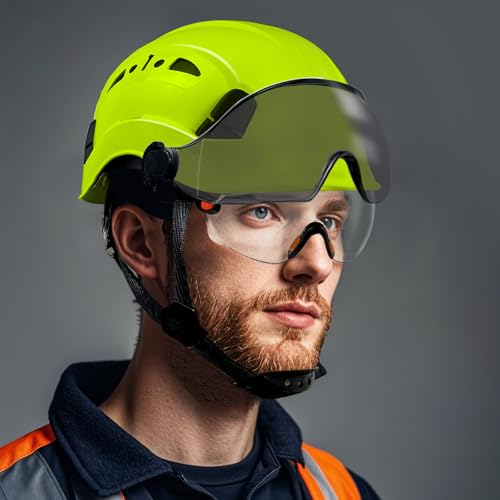 Safety Helmet with Visor Adjustable Size Hard Hat Lightweight Vented Outdoor Work Helmet for Men ANSI Z89.1 Approved Industrial Construction