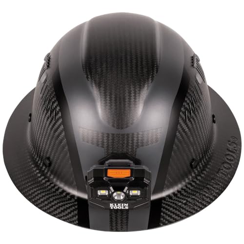 Klein Tools 60514 Hard Hat, K12 Series Carbon Fiber Full Brim, Rechargeable Headlamp, Vented, Class C, Type 1, Spartan