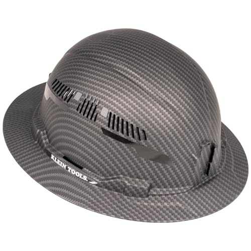 Klein Tools 60626 Hard Hat, Vented Full Brim Premium KARBN Design, Type 1 Class C Hard Hat, 4-Point Ratchet Suspension, Medium