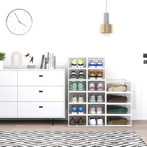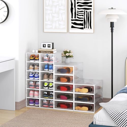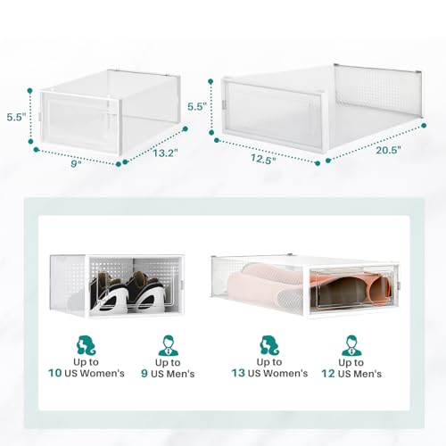 PARANTA 4-Piece Boot Shoe Storage Box, Stackable Clear Plastic Shoe Organizer, With Clear Door For Storing Women Shoes 20.5" x 12.5" x 5.5"