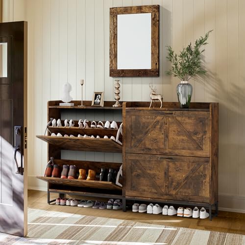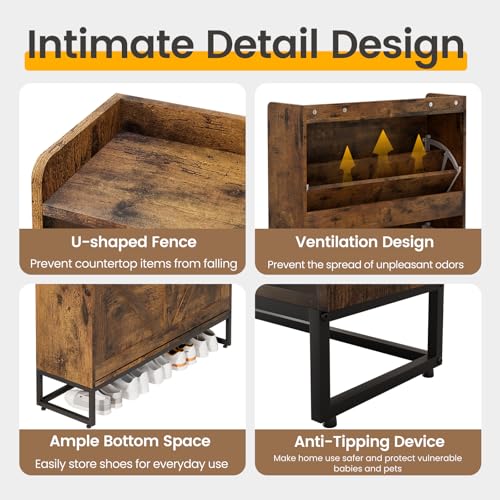 ROWHY Shoe Cabinet Storage, Shoe Organizer Space Saver with 2 Flip Drawers and Metal Legs, Hidden Freestanding Shoe Rack for Entryway, Foyer, Hallway, White